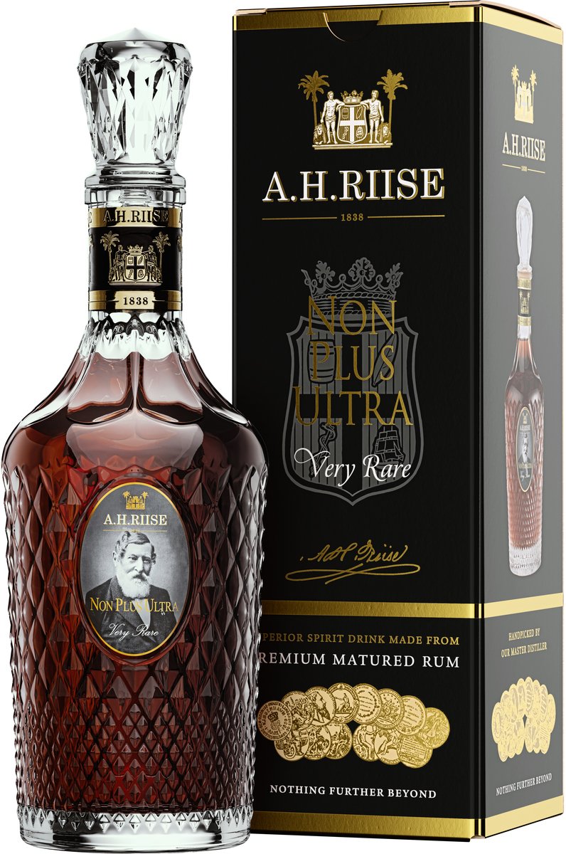 Dnes sa týmto pomenovaním smie pýšiť výhradne len ten najlepší a najvýnimočnejší rum, ktorý značka A.H.Riise vyrobila. V prekrásnej fazetovanej karafe sa nachádza ultra prémiový rum, ktorý je pravým majstrovským veľdielom Master Distillera a ktorý smie tvoriť len to naj - tie najlepšie kvapky rumu najvyššej triedy z najstarších a najvýnimočnejších sudov A.H. Riise. Je preto dostupný iba v obmedzenom množstve, z ktorého sa ročne sa vyrobí len 3000 fliaš. Neváhajte a doprajte si aj vy Non Plus Ultra Very rare - rum stvorený na pomyselnej hranici poznaného a nepoznaného, za ktorou vzhľadom na jeho koncentráciou už nič lepšie ani nemôže byť!